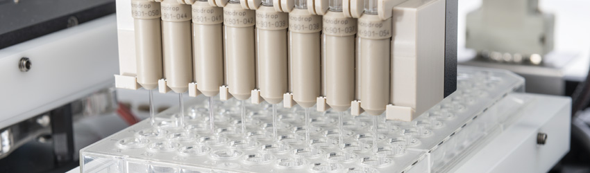 The microdrop pipettes and dispenser heads are ideally suited for efficient automated liquid handling processes and come with a high precision as well as a large adaptability to various liquids.